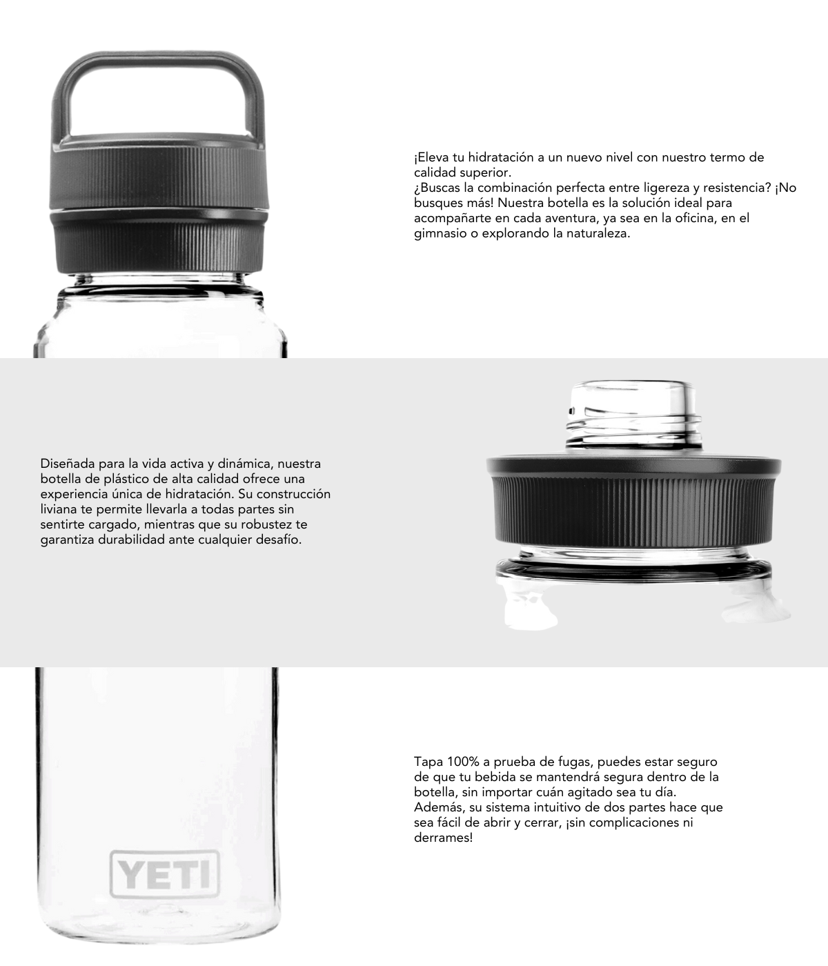 Botella liviana, resistente, con tapa 100% a prueba de fugas y sistema intuitivo de dos partes